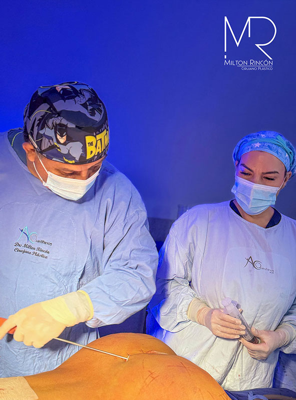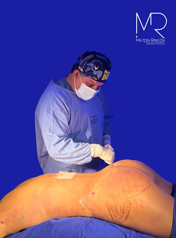 los tejidos grasos extraídos mediante liposucción se colocan en la región glútea bajo la piel y